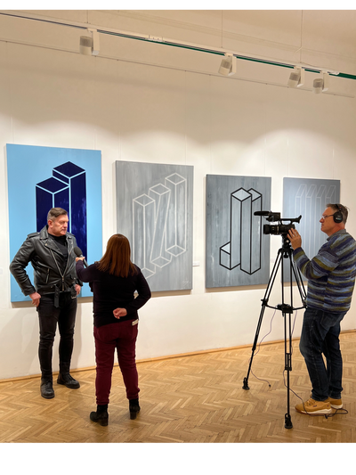 On the outskirts of Budapest, the Constructive Unrealism studio remains intentionally removed—structured, silent, exacting. Occasionally, glimpses are permitted: a brushstroke mid-motion, a wall of unfinished geometries, or the layered residue of a month’s labor.